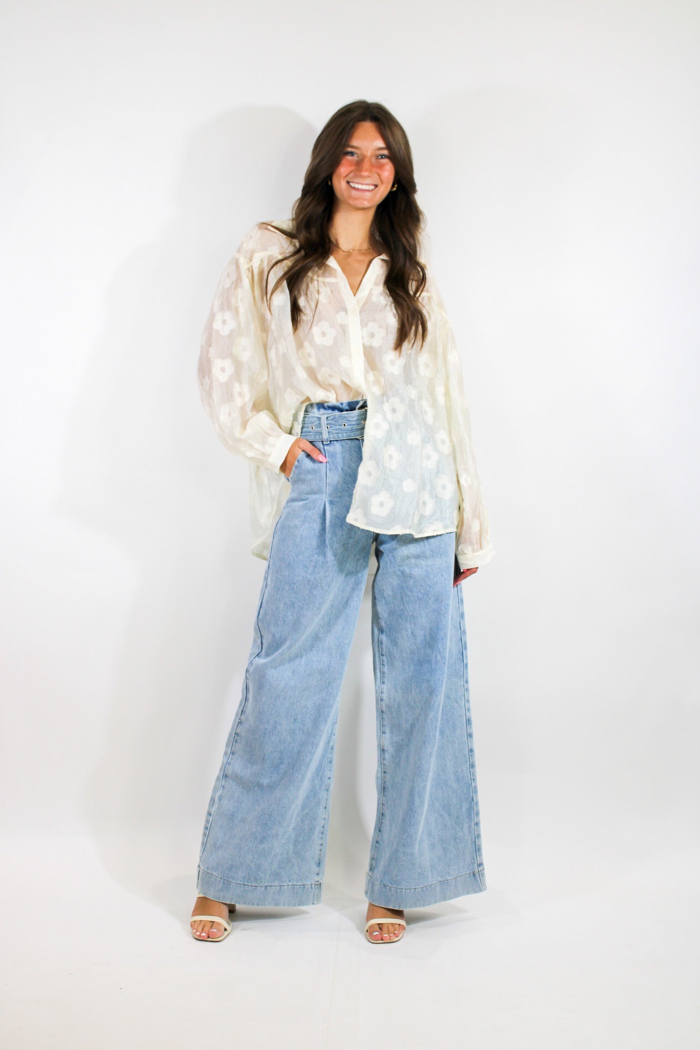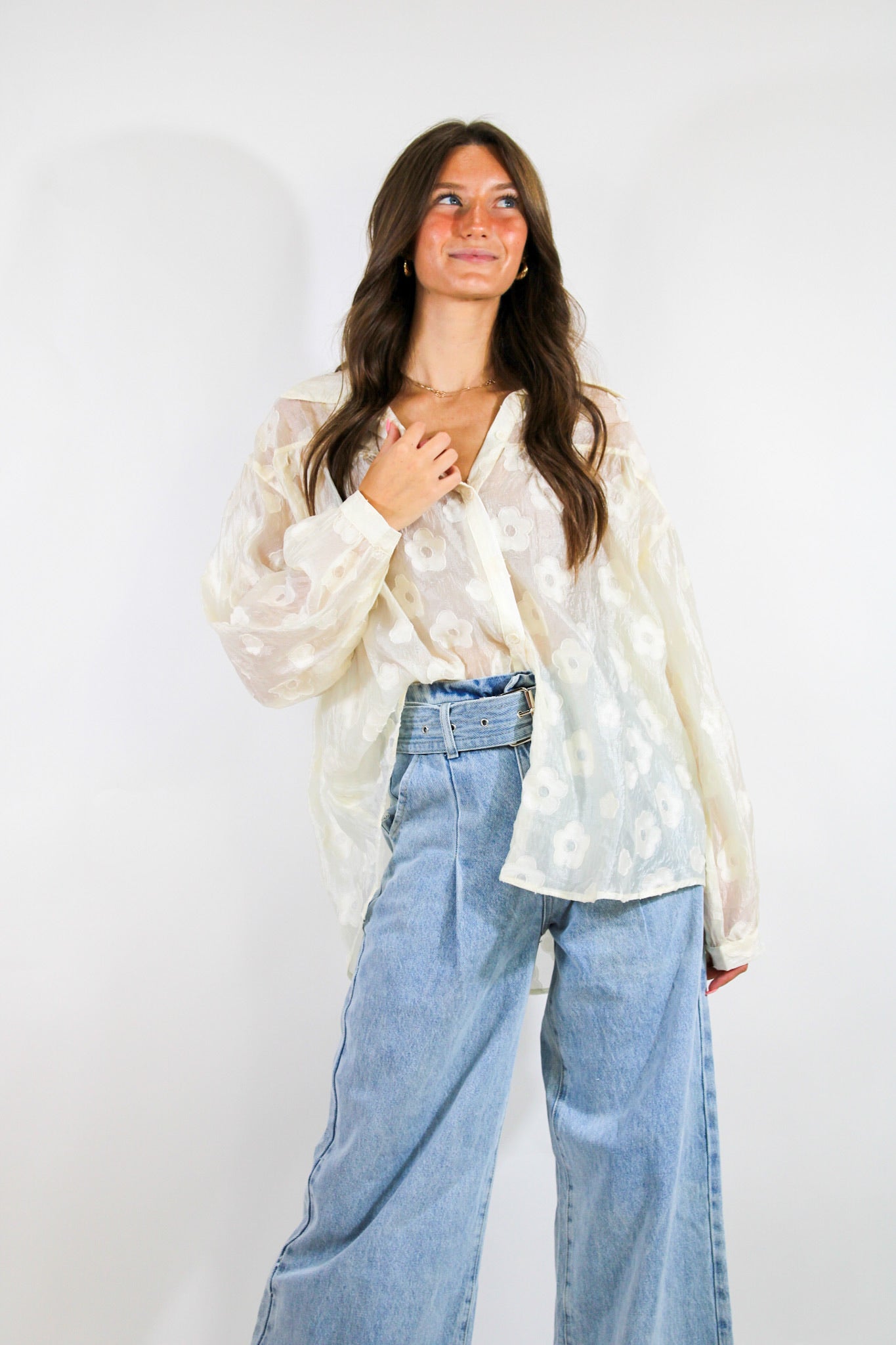 Emily is a 5’6 wearing a size small.-Cream Color-Sheer-Floral-True To Size