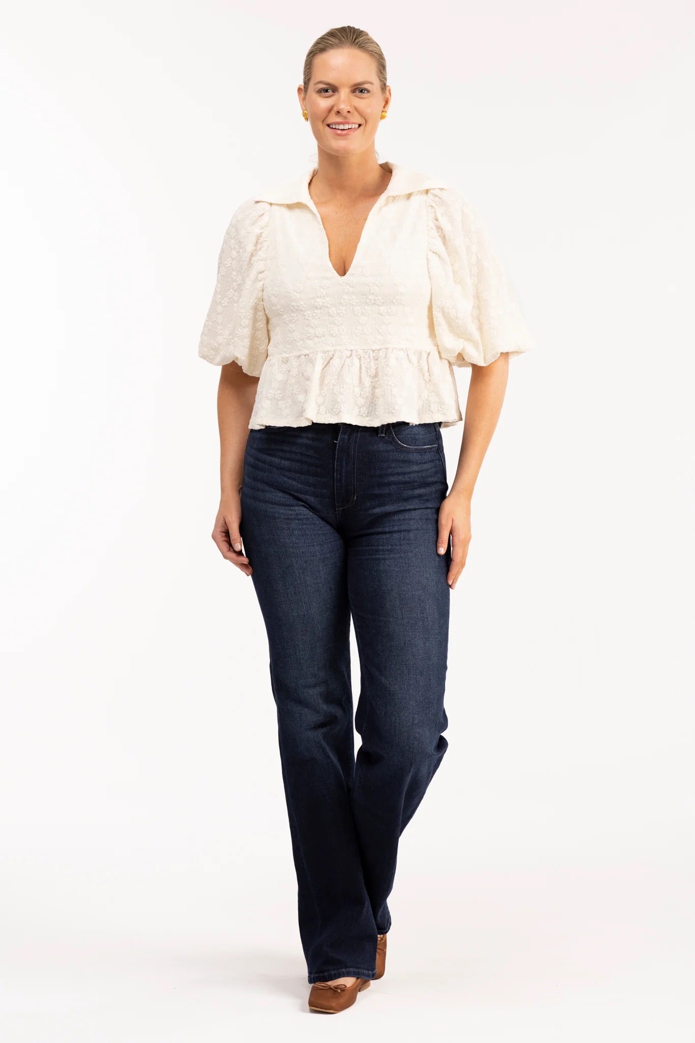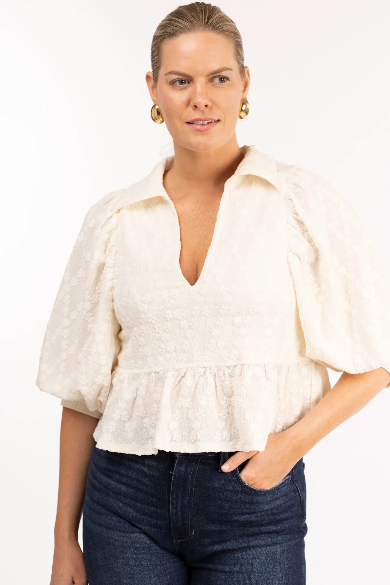 Smith & Quinn Brand- Collared Top.- Flower Detailing.- True to Size.